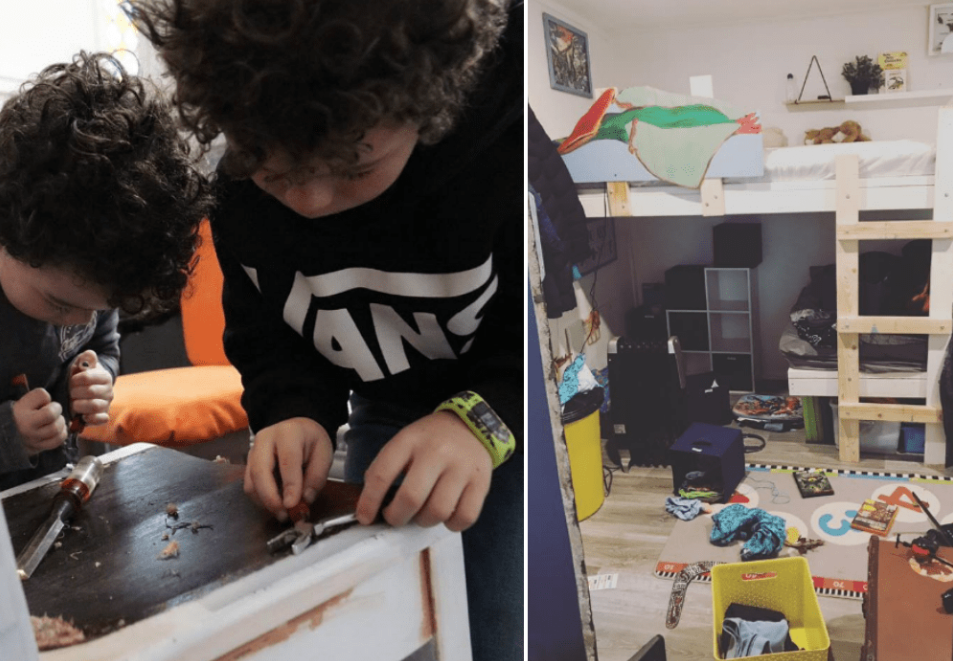 Στην πορεία, έπρεπε να βρίσκει πρακτικές και οικονομικές λύσεις για όλα, χωρίς να θυσιάσει καθόλου ζωτικό χώρο για τα παιδιά ή κάποιες απ’ τις βασικές λειτουργικότητες. Τα κατάφερε βάζοντας το μυαλό και τη φαντασία της να δουλέψουν, ψάχνοντας έπιπλα σε πολυκαταστήματα και αγορές μεταχειρισμένων και φυσικά, αξιοποιώντας όλες τις γνώσεις του παππού της, αλλά και την πολύτιμη βοήθεια των υπέροχων αγοριών της.