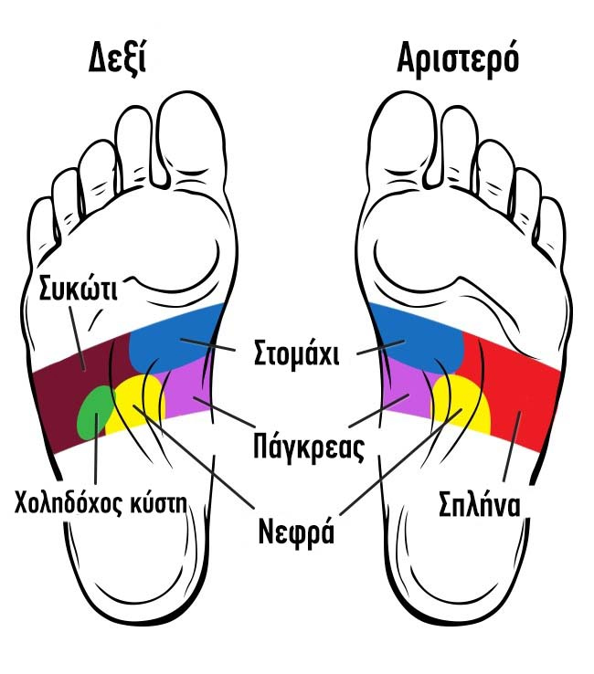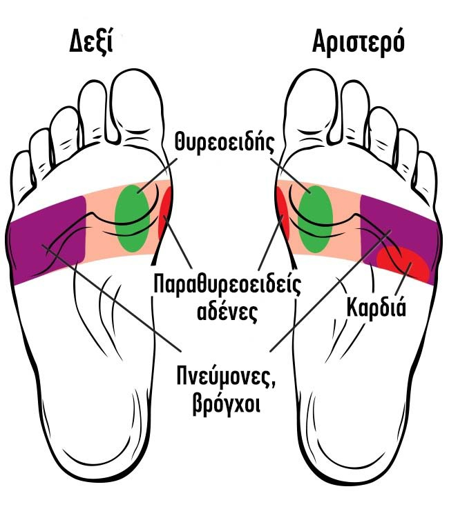 Στα πόδια μας υπάρχουν ζώνες αντανάκλασης για πολλά εσωτερικά όργανα, μέσω των οποίων μπορούμε να βελτιώσουμε τη ζωή και την ευημερία μας.