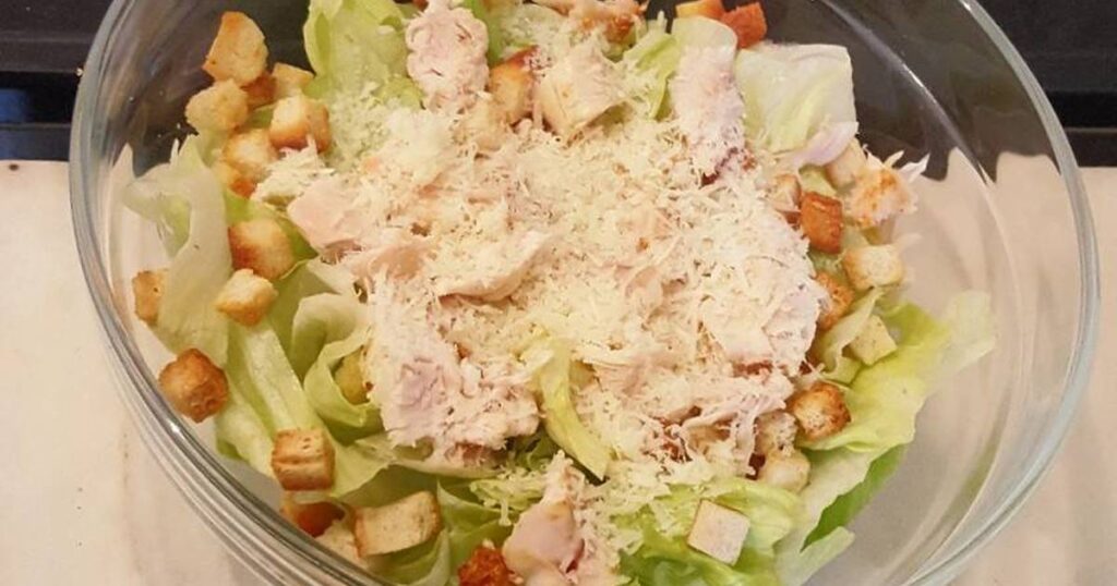 Υλικά ( χρόνος εκτέλεσης: 20 λεπτά )( Μερίδες: 4 ) 2 μαρούλια νερού ( κομμένα με το χέρι σε μικρά κομμάτια )1-2 φιλέτα κοτόπουλου ( κομμένα σε λωρίδες )6 φέτες μπέικον ( σε λωρίδες )Αρκετά κρουτόνΠαρμεζάνα ( κομμένη σε φλοίδες )Έτοιμη σος βινεγκρέτ Εκτέλεση 1) Πλένετε, καθαρίζετε και κόβετε σε λωρίδες τα φιλέτα κοτόπουλου. 2) […]